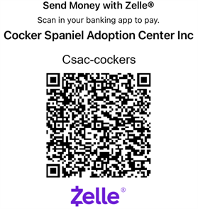 If you do use Zelle, please send a separate email to finance@cockeradoptions.org with your information and reason for the donation. This information cannot be given through a Zelle transaction.