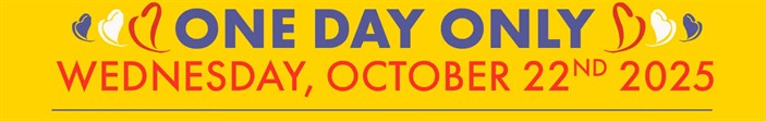 Cannot be combined with any other discount, certificate or redeemed for prior sales. No adjustments to prior purchases. Not eligible for exchanges or refunds. Valid October 22, 2025 only.