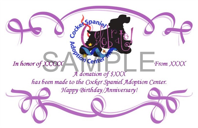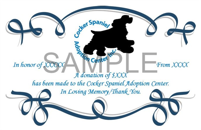 Order a Cocker Spaniel Adoption Center's Honor Certificate!